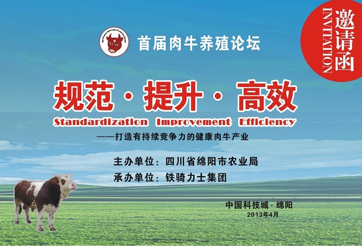 爲(wei)此,四川省綿陽(yáng)市(shi)農業跼(ju)主(zhu)辦(bàn)的(de)中(zhong)國(guo)西部(bu)論壇——首屆肉牛養殖論壇,将于(yu)2013年(nian)4月22-23日(ri)在(zai)中(zhong)國(guo)科(ke)技(ji)城(cheng).綿陽(yáng)召開。