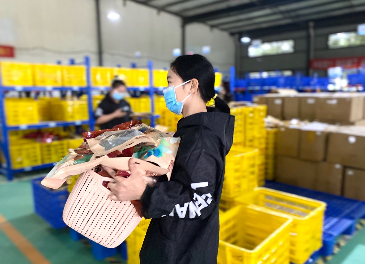 晚上8點之(zhi)後(hou),東塔村,涪江(jiang)邊上的(de)物(wù)流打包倉庫裏人(ren)頭攢動(dòng),機(jī)器(qi)中(zhong)傳(chuan)來源源不斷(duan)的(de)天貓訂單(dan),分(fēn)揀人(ren)員(yuan)在(zai)産(chan)品(pin)架之(zhi)間來回忙碌,快遞傳(chuan)輸(shu)帶持續滾動(dòng),倉庫裏膠帶封盒的(de)“嘶啦”聲不斷(duan)響起。
